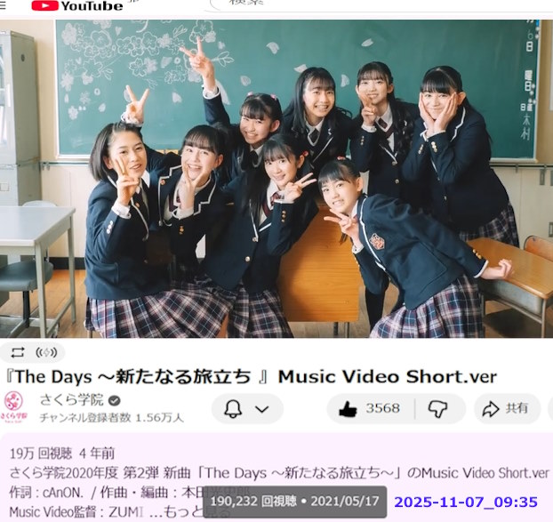 The Days 10日20:30 = 190,314回視聴・2021/05/17。時 = 1人程