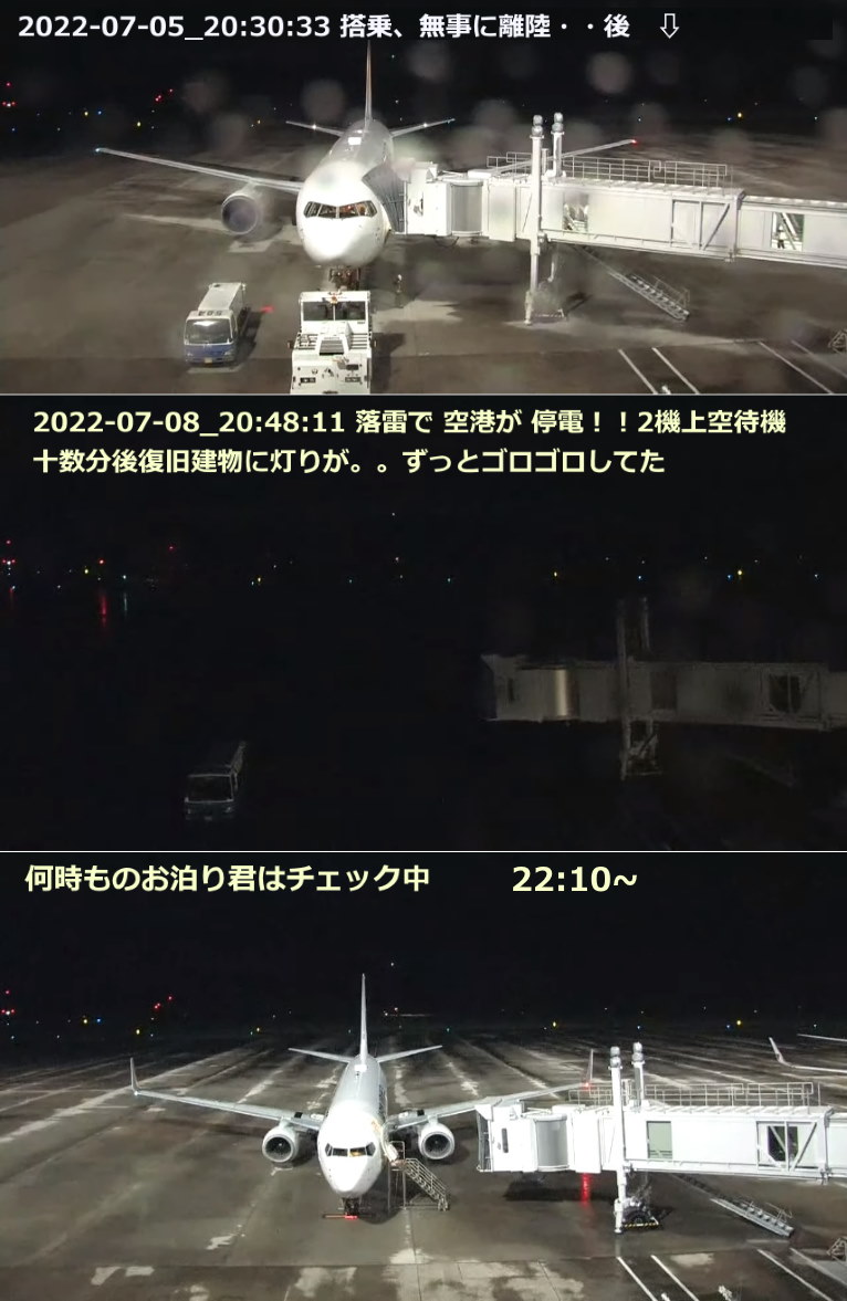GSの人は避難、滑走路の灯りのみ、建物は真っ暗で十数分。