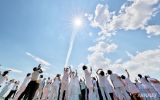長崎空港JAL職員さん達5人で横断幕でお見送りしてますねぇ